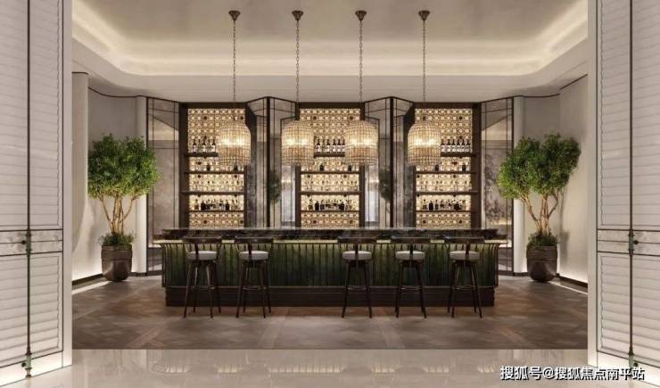 背后是摩登复古的 休闲吧,对标奢华酒店大堂。