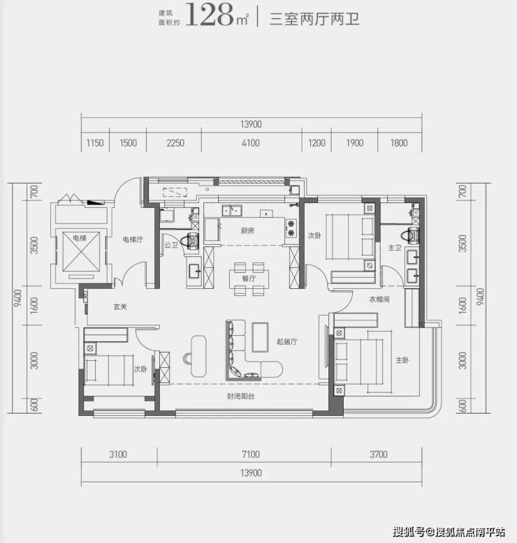 而且,建筑面积约128㎡、139㎡两款户型,入户门旁都预留了 步入式独立储藏间的位置。