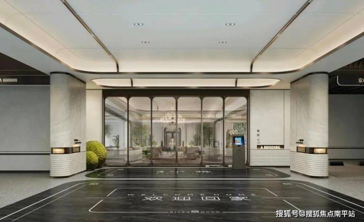 会所东、西侧设置了 两部电梯,你从大堂进入,可乘梯上架空层顶,再穿「超级中轴」从首层入户大堂归家。