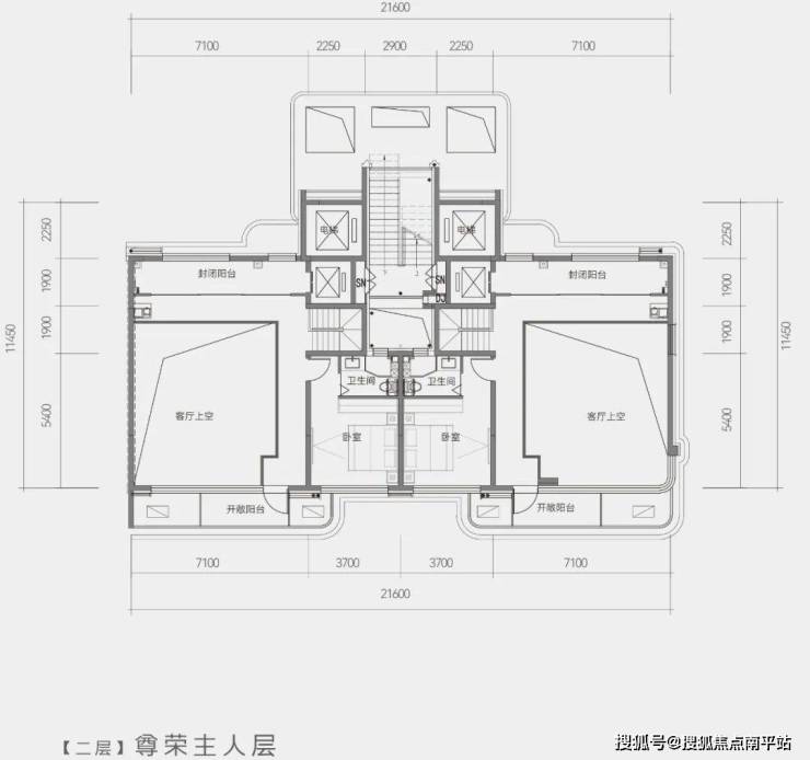 约6米的挑空,就是两个标准层,再加上首层和二层,下叠户型就拥有了 12个南向开间。