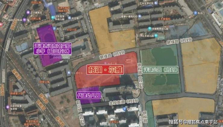 格调·尔雅是天津工大旧址上的5宗地块之一,规划银梭路与规划碧缘路交口西南侧。