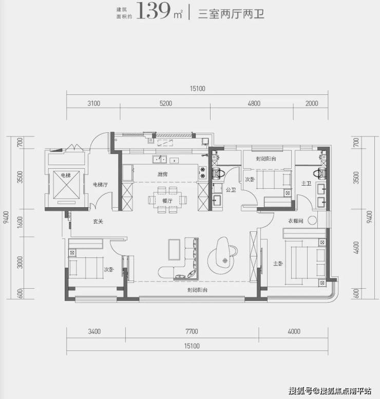全部为 大开间、短进深布局;全部配置 贯通梯、独立电梯厅、内外双玄关;全部 宽厅设计,最大宽厅尺度达到 约7.7米。