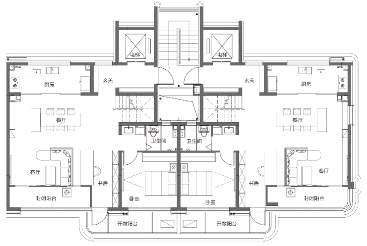 而户型之所以做得如此规整,秘密在交通核设计: