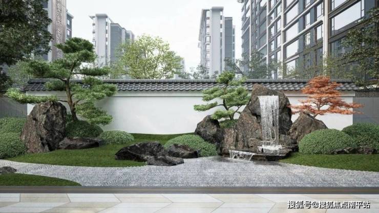 白墙灰瓦、青松置石,在砾石铺就的「水纹」间投下斑驳疏影,营造出空灵悠远的意境。