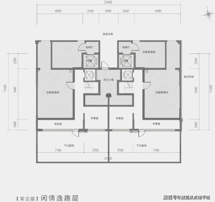 最抢眼的,还是 下叠的下跃空间——它可不是传统的「地下室」,而是在 架空层内、地面之上。