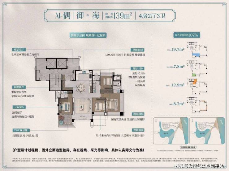 ▍超高得房率:约107%综合使用效率,可比肩传统180㎡户型