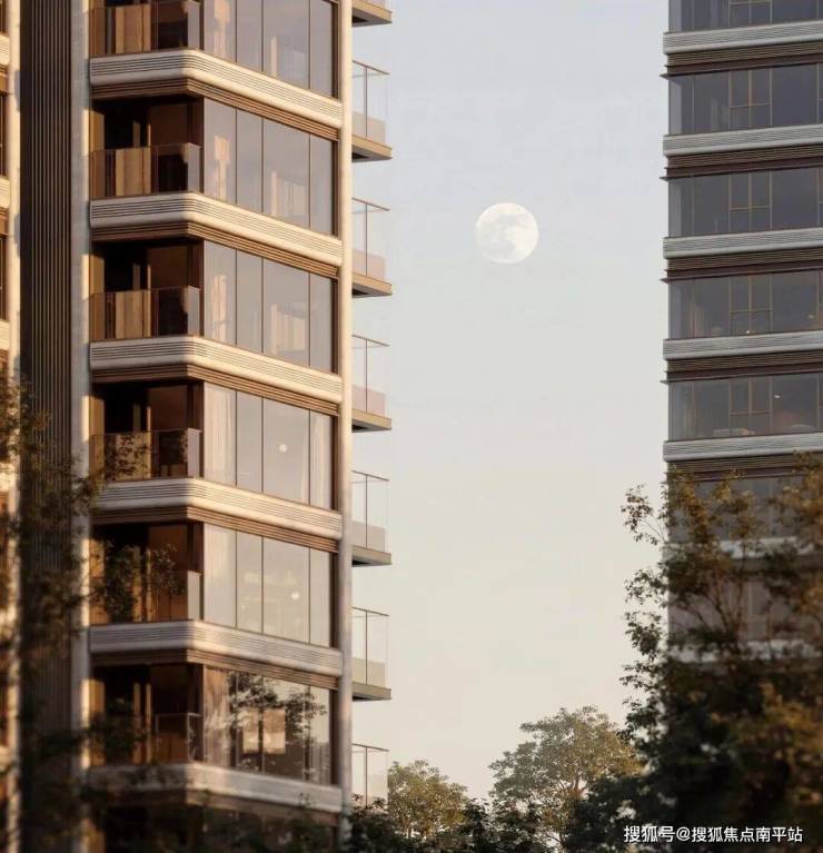 在立面构成中,弧角被提炼为核心元素符号,系统地植入石材沿口、线条转角、阳台收边等关键节点。每一个弧面都经过曲率计算,确保在不同视角下都能呈现连续的光影过渡,消解高层住宅常见的体量压迫感。