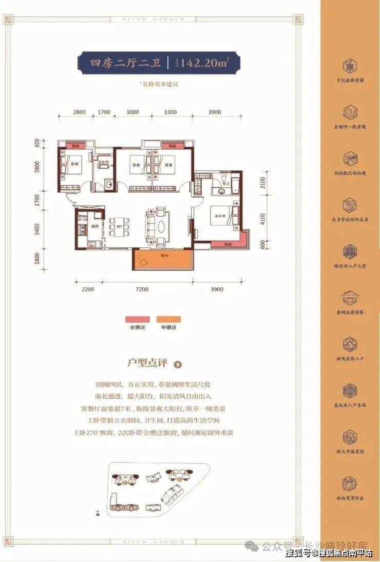 🏢142㎡左右朗阔四房方正实用,彰显阔绰生活尺度南北通透,超大阳台,阳光清风自由出入客餐厅面宽超7米,纵享一城风光主卧270°飘窗,随时邂逅窗外美景