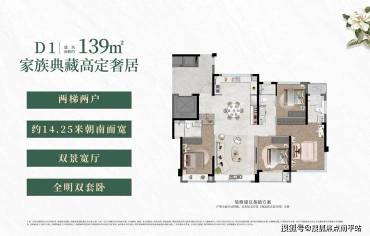 类梯两户,约14.25米南向面宽,双套卧设计,主次皆享独立卫浴。超37㎡宽厅南北双景,U型全景明厨衔接餐厅,家族式布局,尊重每一代的生活节奏。
