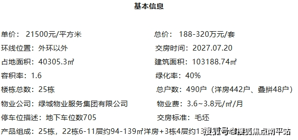 绿城晓月熙棠产品为6-11层洋房和4层叠拼,洋房面积约94-139平米,共442户;叠拼面积约139-178平米,共48户: