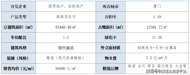 项目位于厦门市思明区厦禾路与将军祠路交叉口东南侧,规划三栋超高层第四代立体生态住宅,产品为建面约199-575㎡平层住宅,全盘共205户。国贸地产与安控地产联合开发,依托企业品牌基础,注重社区氛围营造与产品品质打造。