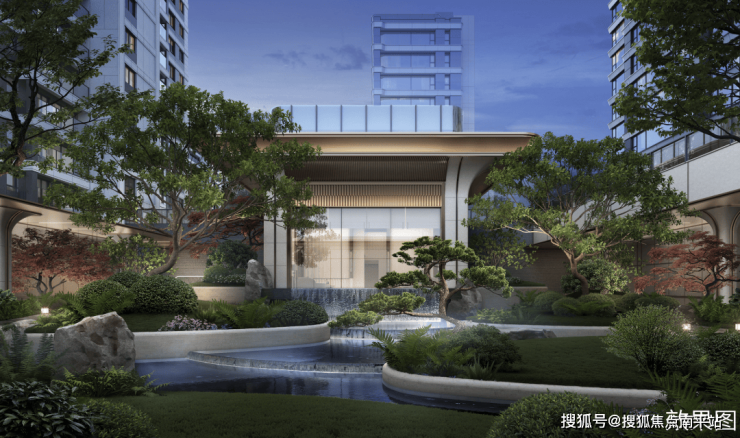 下沉庭院中,配有水系、瀑布等景观节点,并和会客空间相融合,整体空间利用率更高,更为灵动。通过这些配置,让业主的生活从“平面”变的立体,这可不是每个改善盘都能享受的!