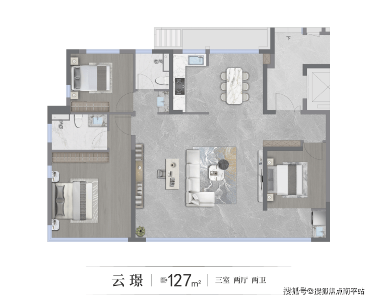 另外这款户型的每个空间,都非常完整方正,南向拉齐的细节,更凸显了设计功力。