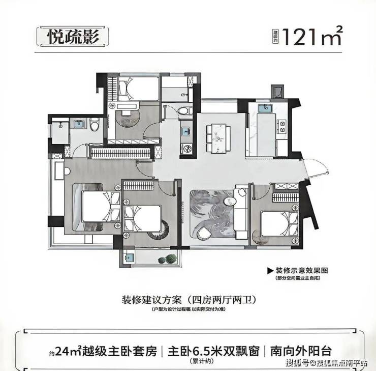 ★121㎡ 4房2厅2卫:南北通透、主卧套房;
