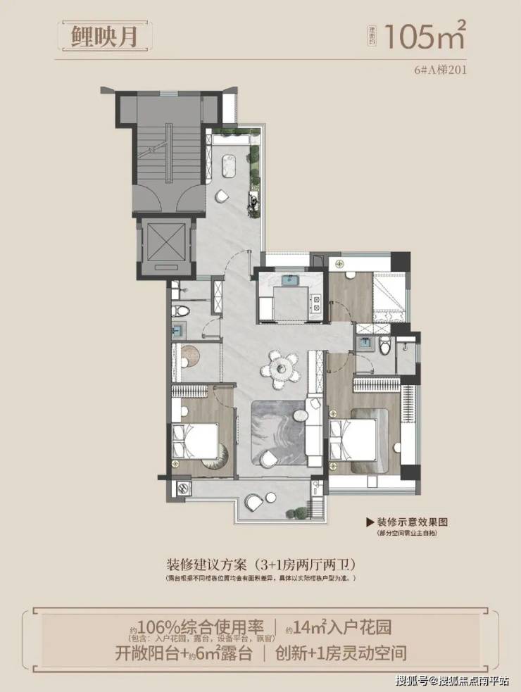 ★125㎡ 4+1房2厅3卫:横厅、高拓展、使用率 115%;