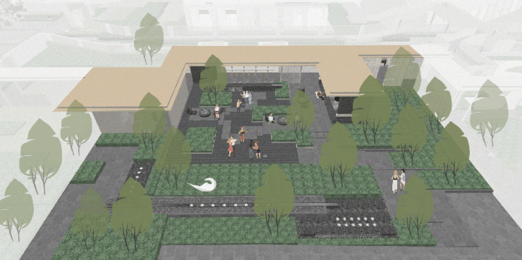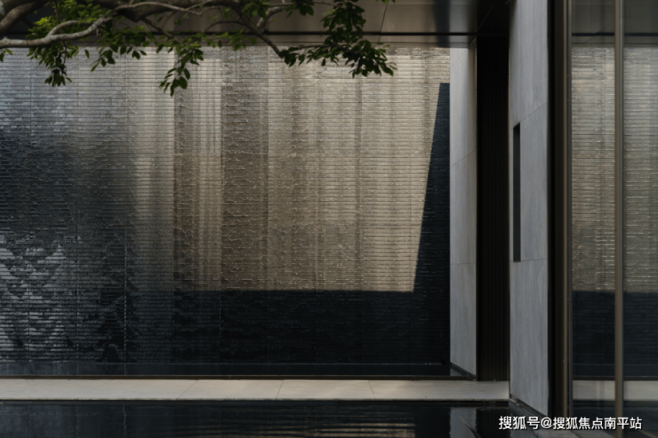 高低错落的铁冬青形态古雅别致,结合中央水景形成整体空间的仪式感,建立静谧的空间氛围。
