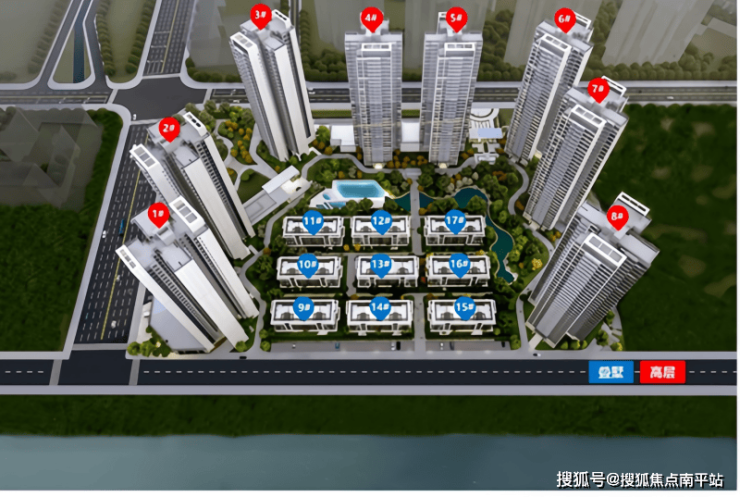 项目占地5.4万平米,规划8栋高层住宅和72套叠墅,是片区内唯一的墅质社区。高层产品涵盖85-140㎡三至四房,满足不同家庭需求: