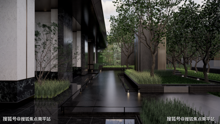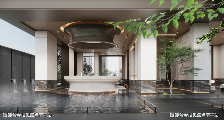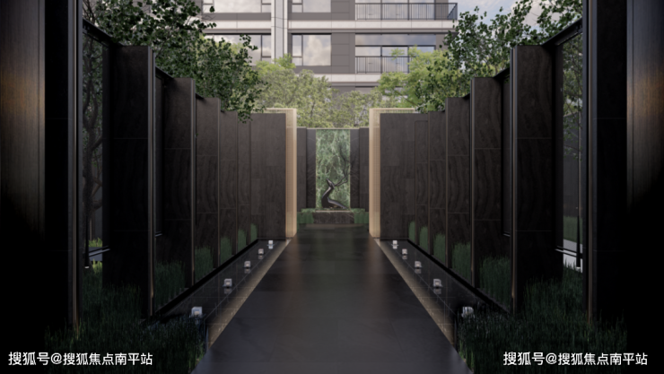入口光奢会馆,架空星级会所,迎宾琉璃光院,幽静的中央花园。