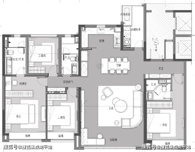 独梯入户,女王玄关,LDK大厅,超长面宽,宽厅设计,270°转角端厅尽享广阔视野。