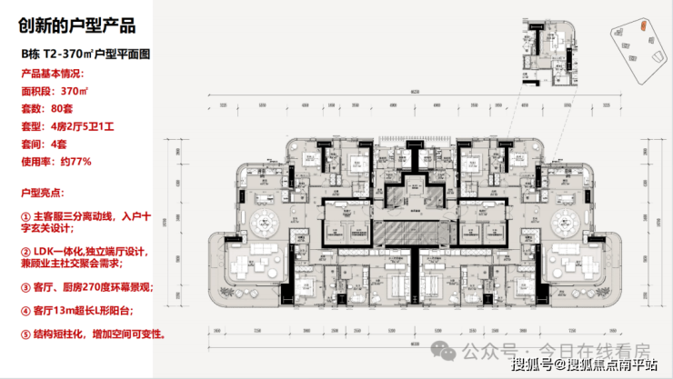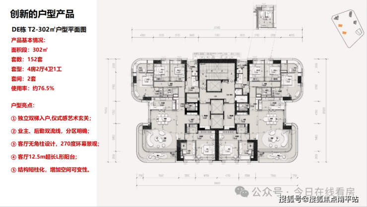 ②、而约 305㎡的户型则为 4 + 1 房 2 厅 4 卫 ,空间更加宽敞奢阔 。客厅采用横厅设计,视野开阔,与餐厅、阳台相连,形成一个一体化的社交空间 。在这里,你可以举办家庭聚会,邀请亲朋好友共度美好时光;也可以独自享受宁静的午后时光,阅读、品茶,享受惬意的生活 。主卧套房设计,配备独立的卫生间、衣帽间和阳台,为主人提供了私密、舒适的居住空间 。