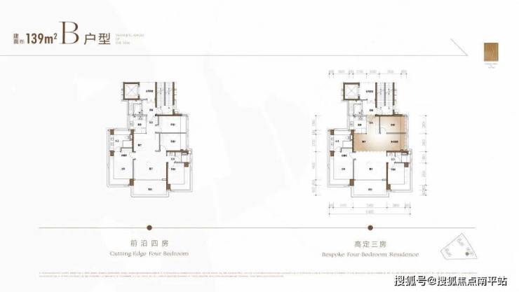 比如,139㎡的两个户型,配了两种风格,一个是偏风尚浅色,一个是偏经典深色,适合年轻精英“高效+精致”审美。