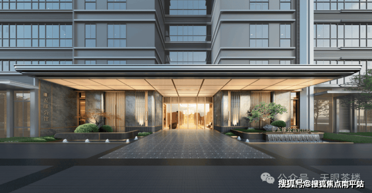 入户大堂是建发目前最高水准,铝板门檐与透光穹顶+观雲同款立面奢石+两侧水系诗意造景+专属标识的归家地面石材铺陈+高级金的色调质感...充满了酒店式高级感。