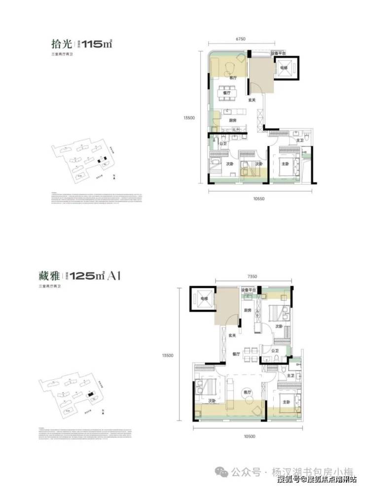 小梅跟项目置业顾问了解到,目前项目释放出两种面积段的户型图,首开1号楼,总层高21层,2T2户(独户设计)一个是115户型125户型都是三房的户型,四代住宅。115户型得房率98%左右,125户型得房率95%左右。