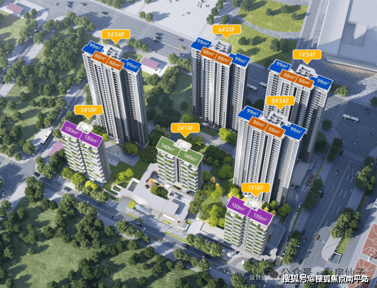 层高:5# 7#8#34F 6# 31F 1# 3# 18F 2# 14F