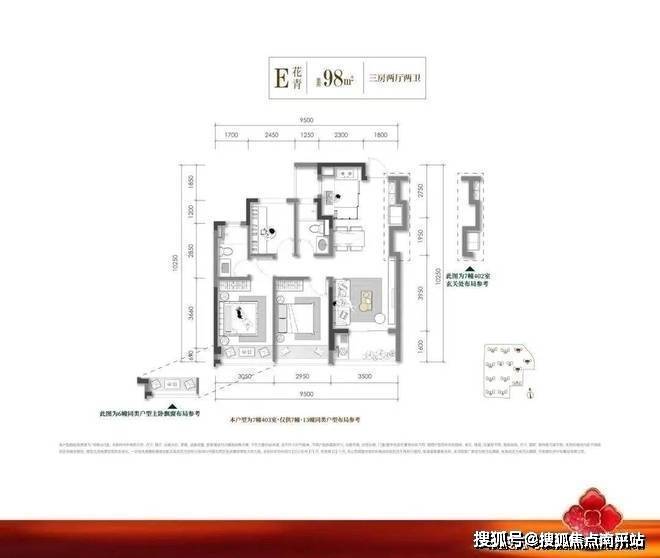 建面约98方明星三房: