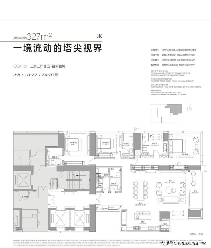 首推T3栋约123套面积304-327--402-570-1032㎡户型,304㎡做2房3卫+家政套间,327㎡做3房4卫+家政套间,402㎡做4房4卫+家政套间,500-1032㎡户型图暂未出来。