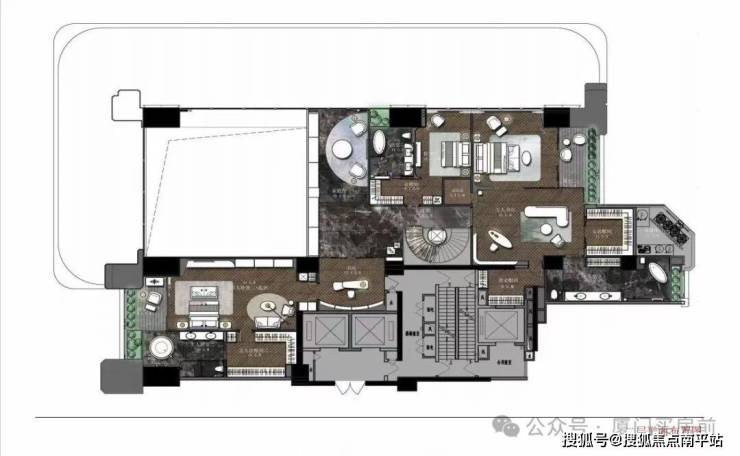 下沉式中庭水景园林、引光影到空间、外挂罗马洞石、满目极尽奢华;