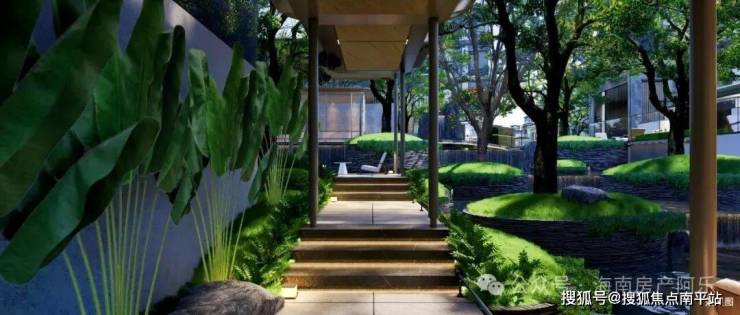 整体园林设计,以天人合一·自然共生的匠心手笔,采用更质朴的自然艺术美学度假景观呈现,融以“林隐会客厅、精神水院、度假泳池”等功能节点进行艺术化布局,口袋式主题花园园林规划,以“一带、两轴、多境”的花园结构铺陈,将300米林谷游园轴+180米水境游园轴及3大酒店式度假入口景致,沉浸时光,一步一景,打造山海自然与艺术共生的海居院落美学。