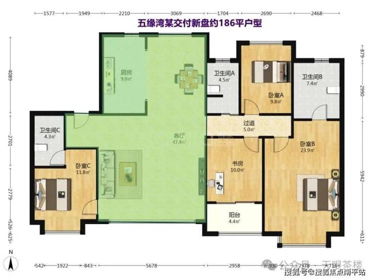 建发望湖约179平户型, 还带约10平的独立电梯厅,我们粉丝开玩笑说,过去五缘湾想买个带独立电梯厅的房子太难了,包括传统豪宅天琴湾也没有这种配置。