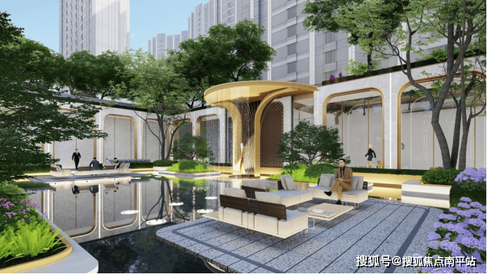 与得天独厚的临河位置相融合,金地·时代印的社区空间布局采用依山傍水的设计理念。社区景观定义为沉浸式艺术森活社区,匹配客群需要,有几大突出的特点: