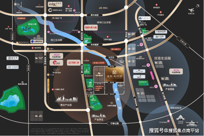 金地·时代印位于大寺南板块,距外环约3km,距领世郡墅区约1km,刚好是西青大寺、河西新梅江、津南双港三个板块所辐射的“交集”,三个板块的成熟配套的距离与时间都相近。“三横”“四纵”路网便捷通达河西各处,6号线与在建中的7号线双地铁从片区内设站,项目本身毗邻还规划12号线和M12线。驱车到梅江山姆超市和环宇城的时间都在15分钟之内,看似它在外环外的冷门板块,但其实与繁华的距离恰到好处,离尘不离城。