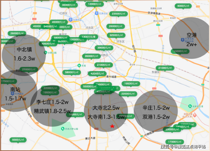 在此之前,河西外溢的客户,只能选津南,沿天津大道往双港、国展西、海教园方向,新房均价在1.5万元/㎡以上,如果是4.0新品单价就要超过2万/㎡。但其实双港和大寺南同属于河西外环向外延伸3公里的辐射圈内,价格却相差近50%甚至更多。