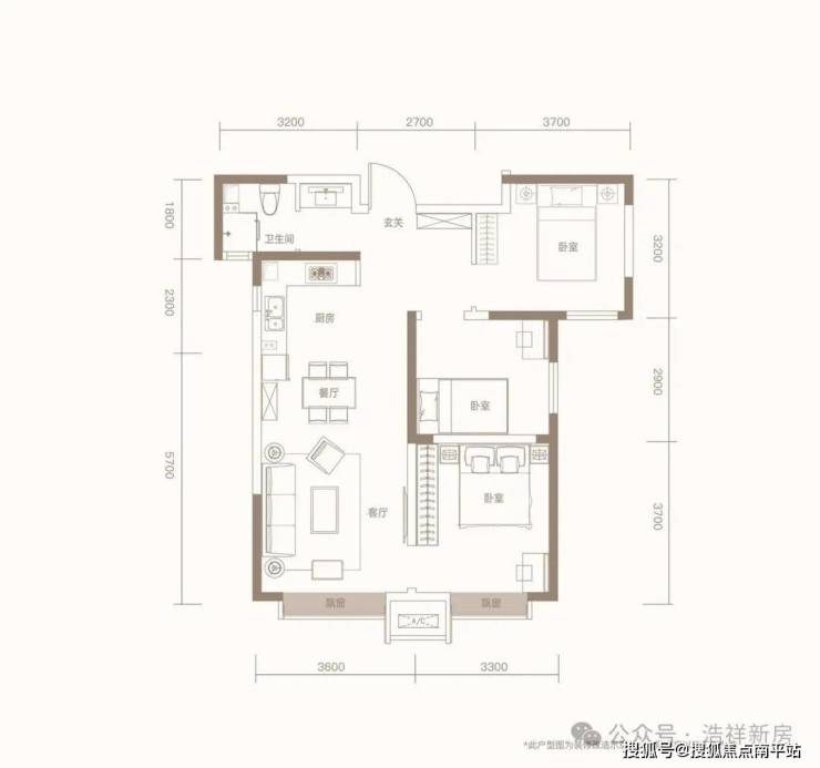 3、南向客厅、主卧均赠送60公分景观飘窗;
