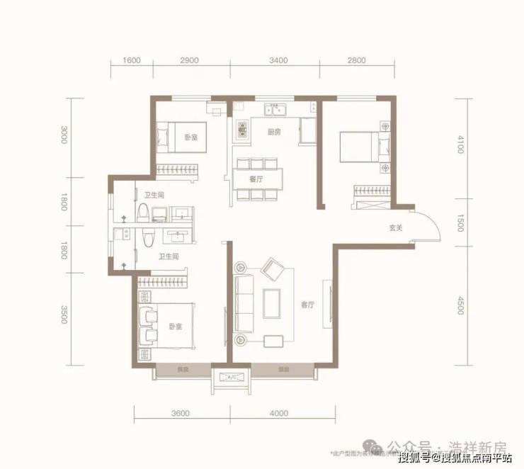 1、户型特点为格局方正,南北通透,带独立玄关;