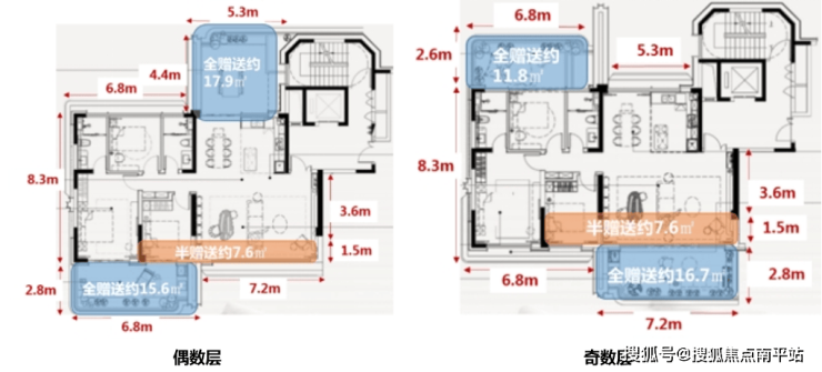 【125㎡户型】 赠送面积约36-41㎡,实际面积超160㎡,最高使用率可达133%。