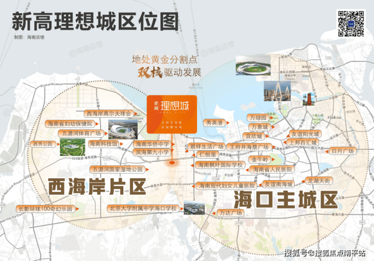 从这张位置图可以清晰看到, 新高理想城处于海口主城区和西海岸片区的黄金分割点。