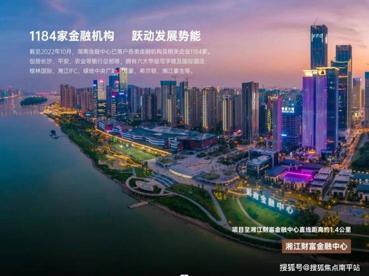 ⑤湖南金融中心:湖南金融中心已落户各类金融机构及相关企业1184家,包括长沙、平安、农业等银行总部,开源证券、东北证券、五矿证券等进驻。拥有六大甲级写字楼及国际酒店:楷林国际、湘江IFC、绿地中央广场、万豪、希尔顿、湘江豪生等。
