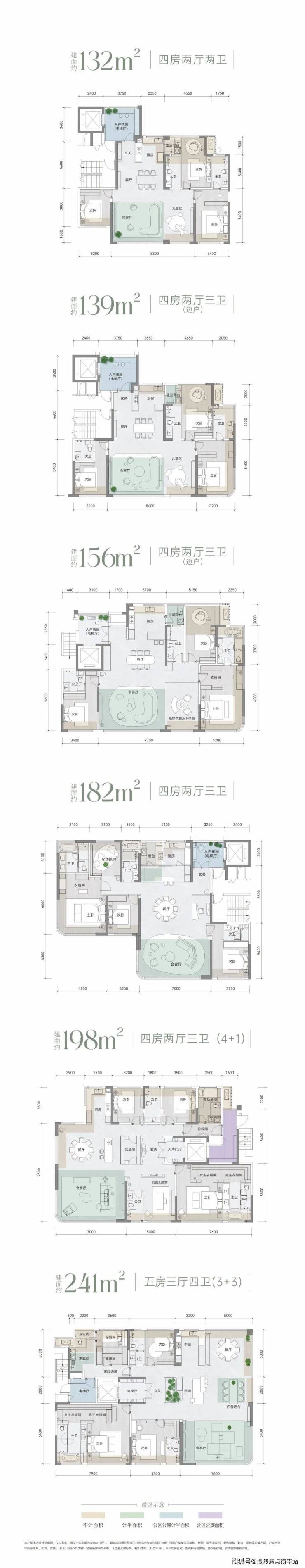 建面约132-241㎡全系户型,新规负公摊,巨幕宽厅、LDK全景生活舱及多面采光设计,光景与生活无界交融。