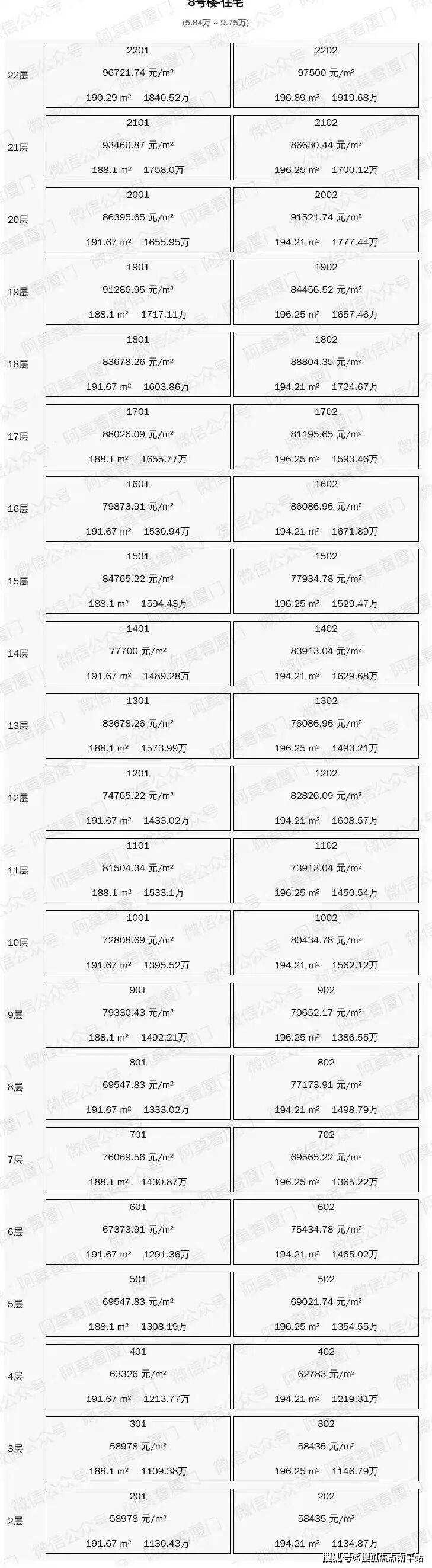 一房一价表(阿莫看厦门制图)
