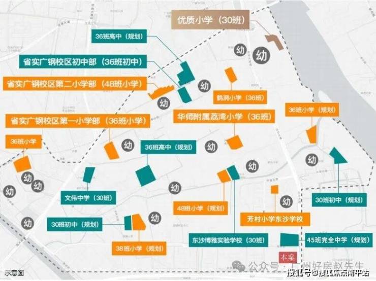 芳村小学教育集团加持,周边多所优质中学项目配建幼儿园;广钢新城车辆段规划2所九年制学校,聚焦荔湾公立老牌学校芳村小学新东校区、芳村小学东沙校区、广州市第四中学、广东实验中学荔湾学校等优质学府环绕,小升初更便捷以及紧邻项目北侧地块将规建30班高中+15班初中。