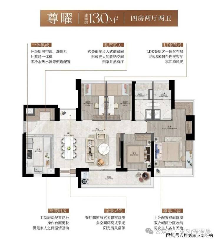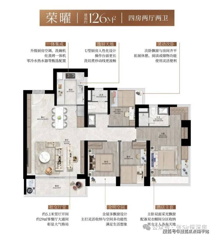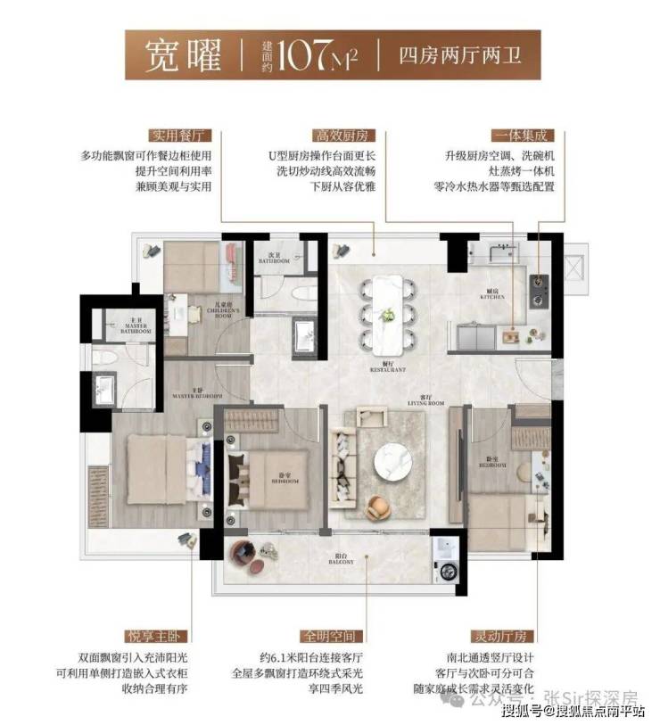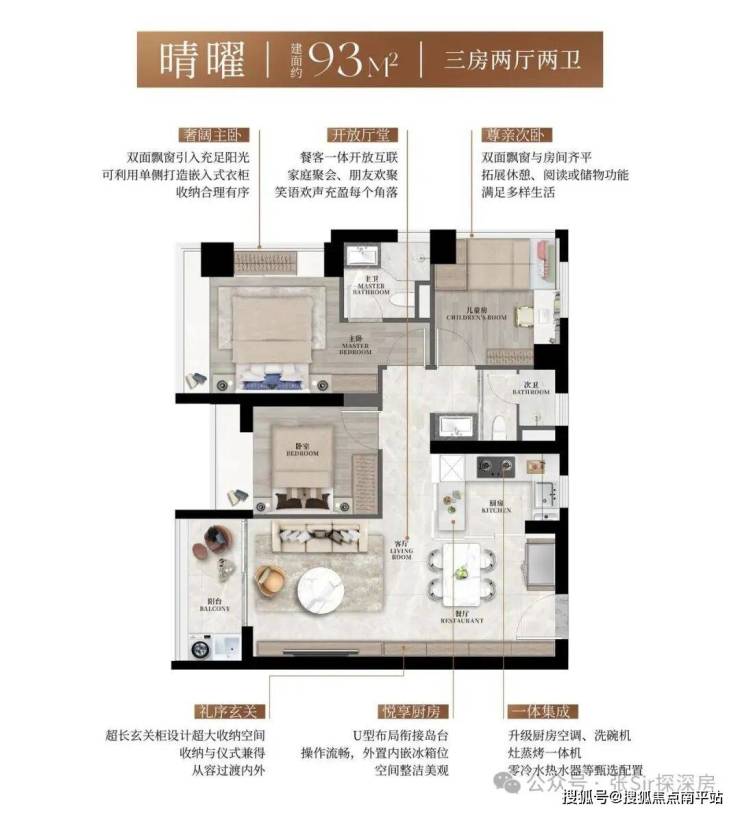 •新规下的实用革新:建面约93-130㎡全南向三至四房,约90%得房率,同等面积多一房。