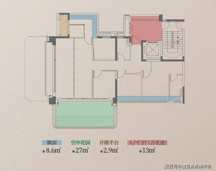 传统户型中,电梯厅、玄关往往昏暗压抑。新一代143㎡户型则打破了这一惯例。