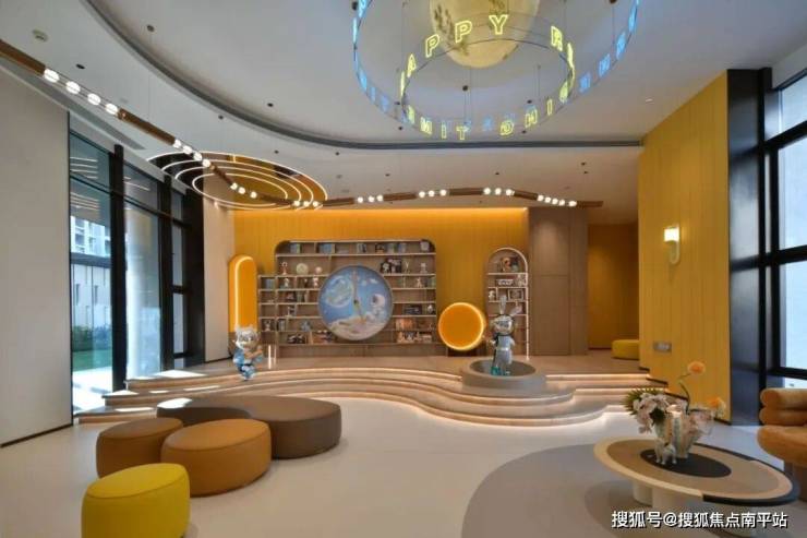 未来社区每栋楼的 架空层将设置不同主题泛会所 ,其中 二展中呈现2号楼的架空层 , 同时拥有「咖啡区」+「茶艺室」+「儿童活动区」 三大功能场域,且都是高标准打造。