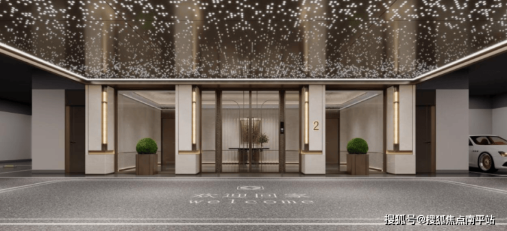 例如 按五星级酒店标准精装的地库入户大堂,昭示区星空顶+壁灯迎宾+精装入户门厅 ,结合智能无感归家、自动落梯,营造尊崇归家礼仪。
