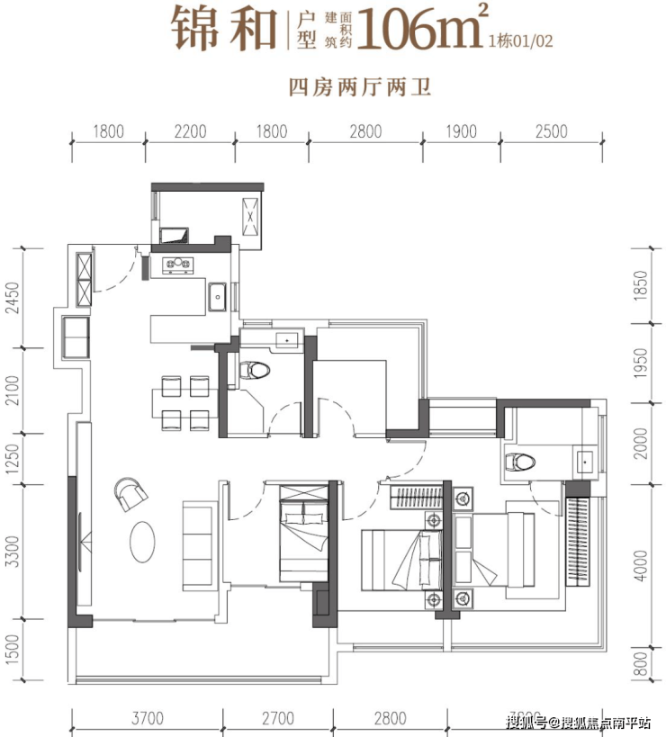 2)104–107㎡ 4房2卫(刚改主力)