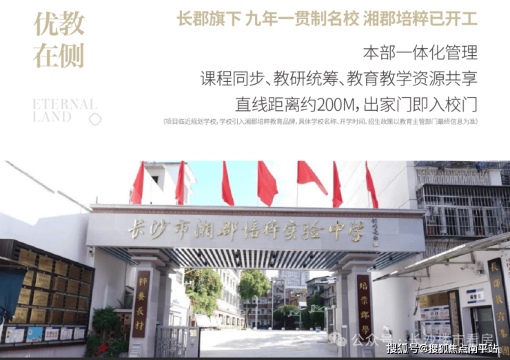 教育方面,配建托儿所、幼儿园,规划九年一贯制学校(引入湘郡培粹品牌),2026年秋季开学(学区以官方文件为准)。